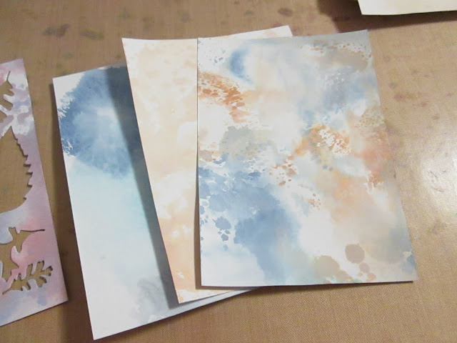 Použila jsem modrý zasmooshovaný základ a proto jsem se rozhodla, že na naembossované lístky přidám trochu zlata a hnědých odstínů…